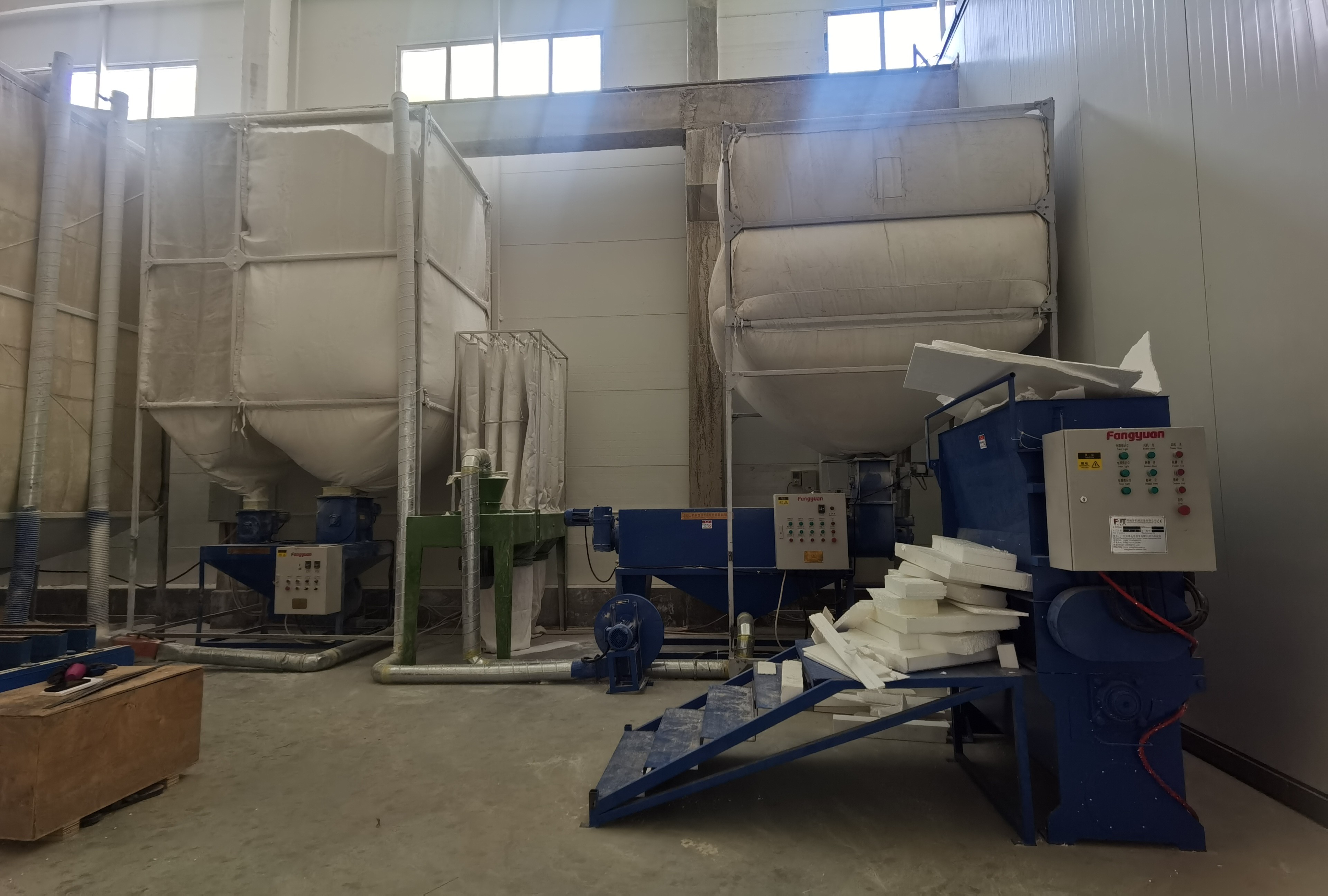 El taller de producción de EPS produjo productos defectuosos, las sobras pueden reutilizarse a través de este sistema de reciclaje, para que la empresa obtenga mayores ganancias